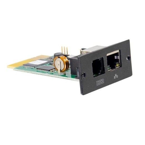 The SNMP Web Card enables monitoring of UPS equipment. This card allows the user to remotely control the UPS and monitor its current status remotely or from any off site location. Configure an IP address and access from a web browser to have control and monitoring of UPS status and alerts, parameters and thresholds, and the ability to auto reboot.